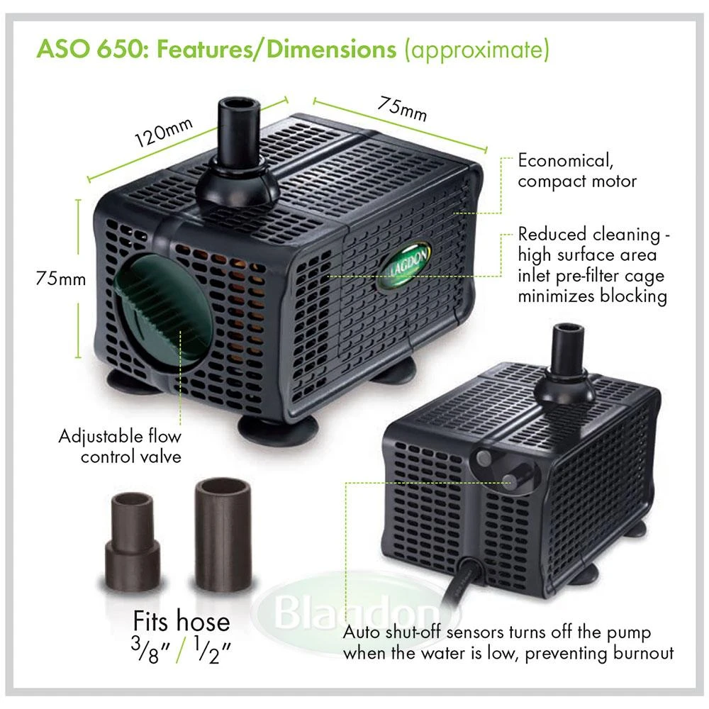 The 650 Auto Shut Off Feature Pump has built in shut off sensors that turn it off when the water level drops to low and automatically switches back on when the water level returns. This compact performance pump uses only 10 watts of power making them very economical to run and can be used to run a fountain at a height up to 100 cm with a flow of 160 litres per hour. The adjustable flow rate of 650 litres make it ideal for most medium sized garden water features. The pump also includes a pre-filter cage helping to reduce cleaning and blockages. See our product video for water feature size guide.