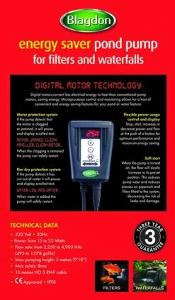 Amphibious IQ Variable Flow energy saving pond pump 2250-4500 for filters and waterfalls. The new adjustable flow pumps come with the latest digital motor technology and microprocessor as the flow is adjusted the wattage also adjusts saving on electricity. This small feature packed pump comes with a Blagdon 3 year Guarantee.