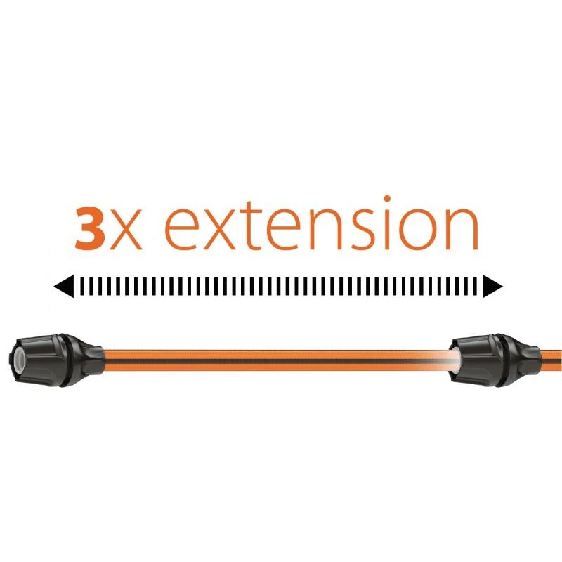 Claber’s new Springy Hose is the newest in garden hose technology made from elastomeric polymer rubber allowing it to stretch up to 3 x in size. Springy hose is strong and very lightweight and with a slight pull you can reach where you need to, springy will reach its maximum length easier after 2 / 3 uses and reach its. The Rubber Springy hose will achieve its maximum length at 3.5 bar water pressure, the length of the hose will vary dependent on water pressure. The hose is extension capacity is also protected by a honeycomb structure for long life.